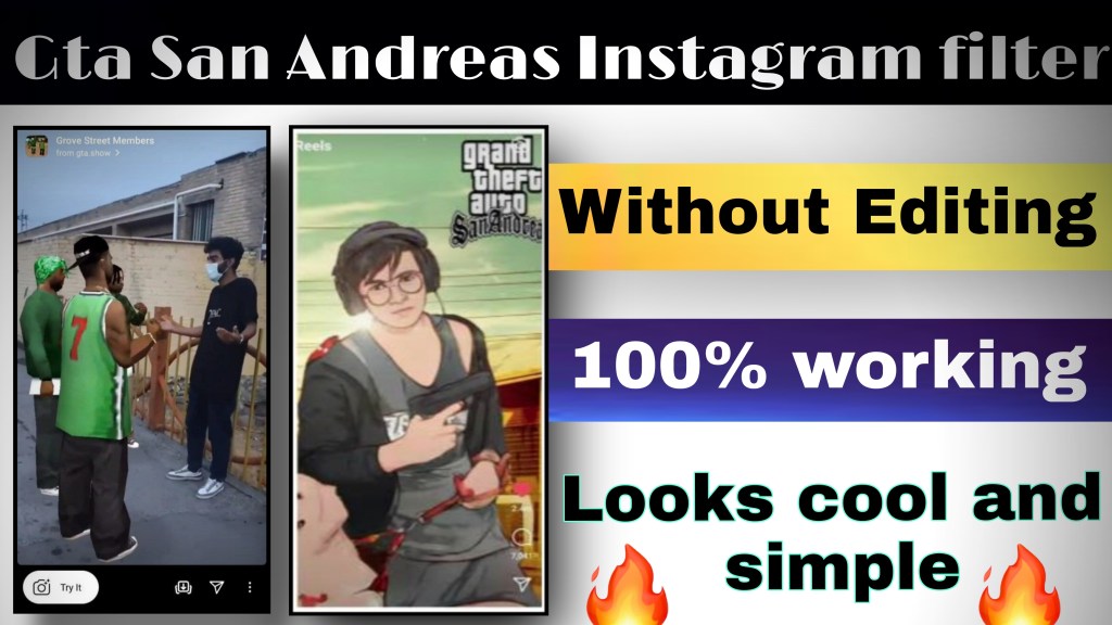 In the gta san Andreas filter, you can see the characters of gta games, and you can make video with gta san andreas characters by using this filter, and currently gta san andreas is the viral filter of instagram and also gta filter is trending on instagram reels so if you use this filter and make videos, you have more chance to getting lots of likes and followers on instagram..